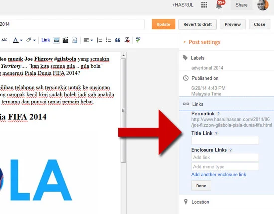 Cara menukarkan permalink atau URL entri kadangkala perlu jika mahu ubah satu-satu entri lama menjadi entri yang ada ciri-ciri SEO, atau digunakan untuk entri-entri baru.
